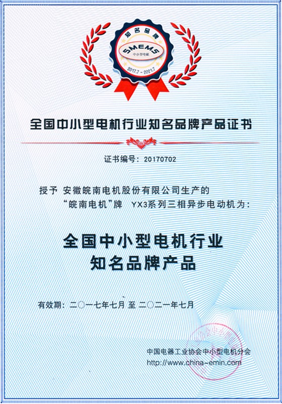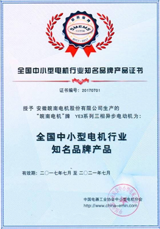 會上,皖南電機被授予“全國中小型電機行業(yè)知名品牌產品”和“中小型電機分會工作先進單位”稱號,并分別頒發(fā)了榮譽證書。